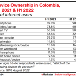 - Colombia leads Latin America in PC and tablet time spent, though—like other countries in the region—it saw a drop in this metric in H1 2022 after a spike in H1 2021. Colombia also leads, in a tie with Argentina, in broadcast radio time.