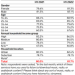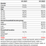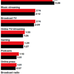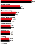 - Latin America’s lead in music streaming goes hand in hand with its close second place in podcast listening. In the latter activity, it trailed global leader Asia-Pacific by only 3 minutes per day in H1 2022.